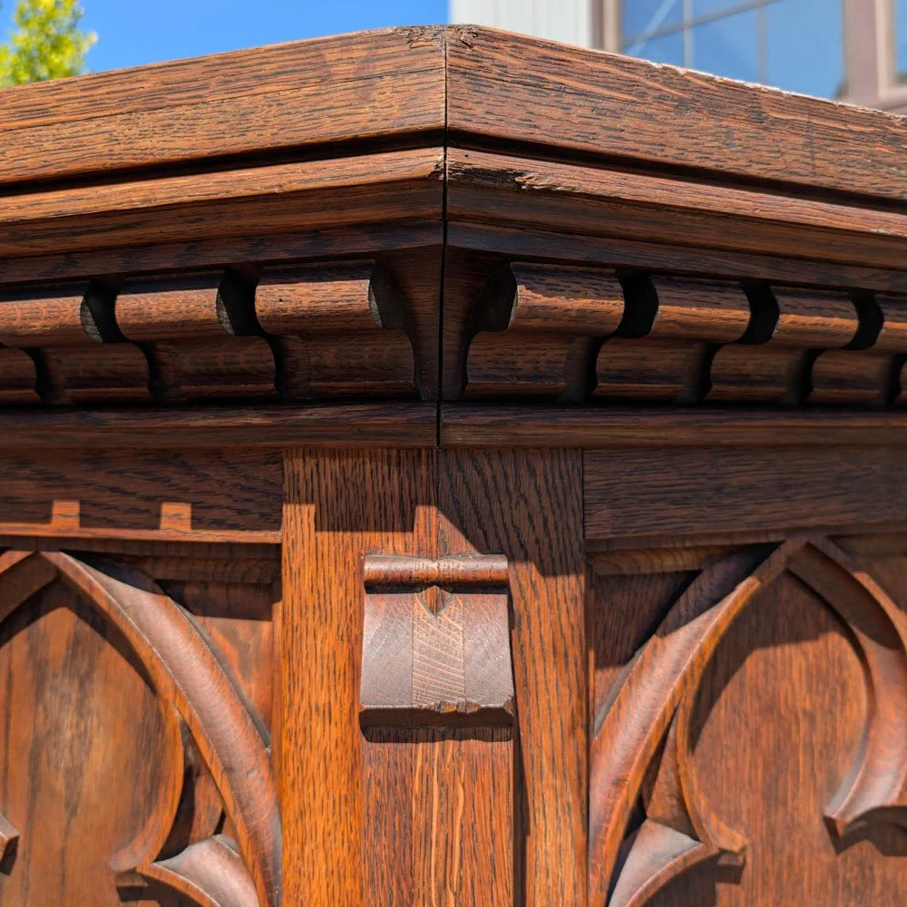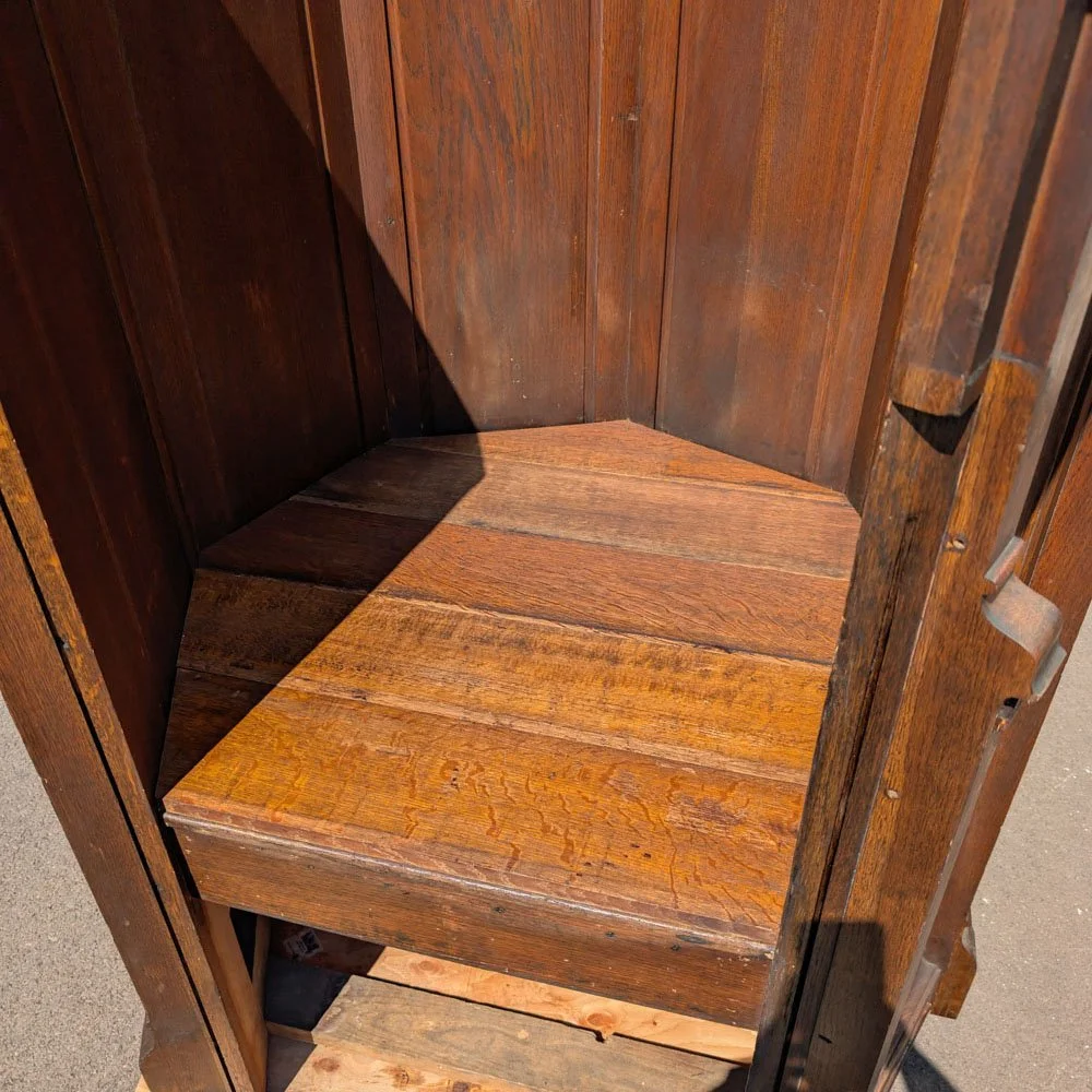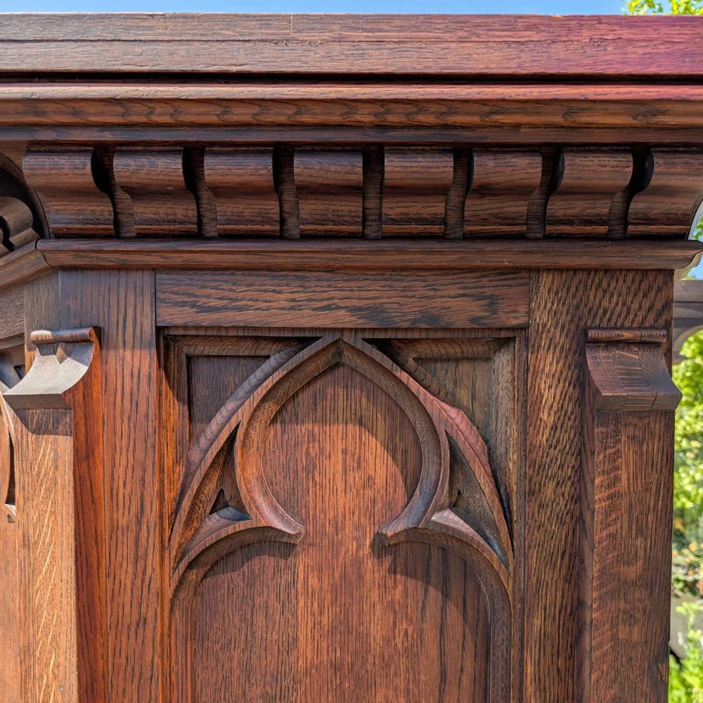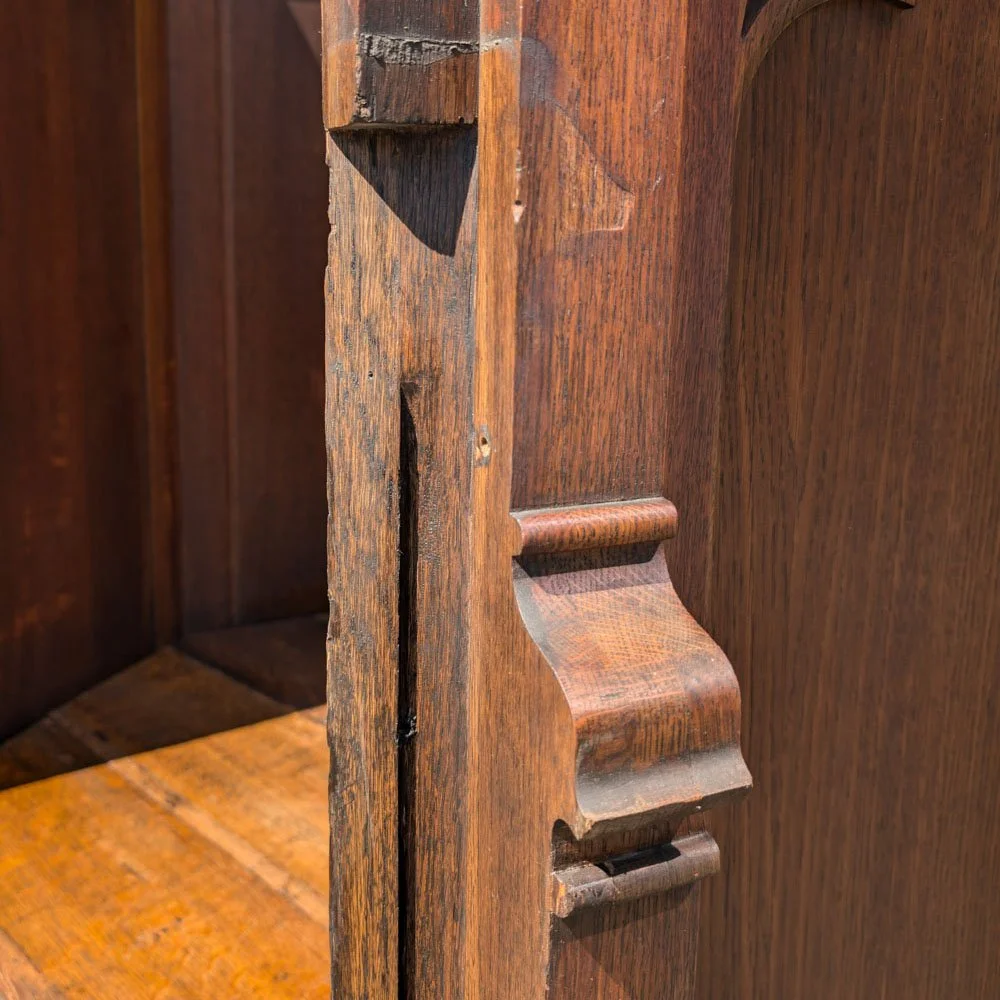 Look at that finish- the chocolatey-colored oak wood and the beautifully carved accents makes this pulpit stand out! Also it has a brass label which states “He being dead yet speaketh” gives the pulpit a gothic and grand aura of its own. Just know we aren’t preaching to the choir, this pulpit is absolutely heavenly!